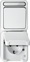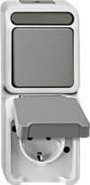 Kombination SCHUKO-Steckdose mit erhöhtem Berührungsschutz/ Taster, Schließer 1-polig