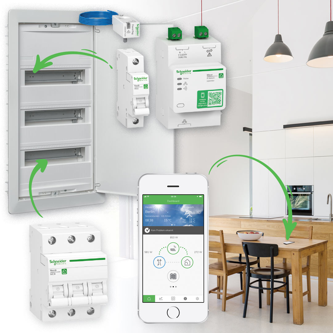 Gewinne wertvolle Erkenntnisse über deinen Energieverbrauch und senke diesen dauerhaft und nachhaltig. Die Reiheneinbaugeräte der Serie Resi9 unterstützen dich in Verbindung mit dem Energiemanagement mit Wiser™ und den PowerTag Energiemess-Sensoren bei deinem Wunsch nach mehr Übersicht über deinen Energieverbrauch. Ganz einfach und komfortabel per App auf deinem Smartphone.