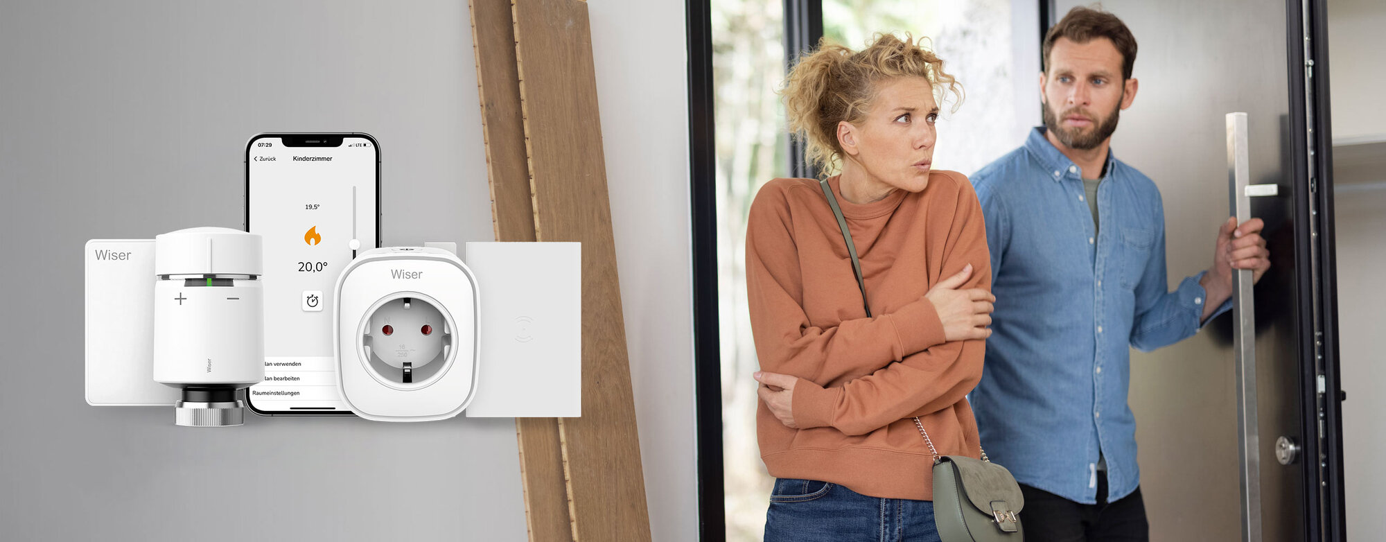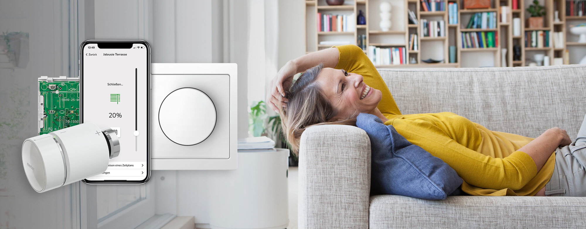 Das Licht ganz entspannt vom Sofa dimmen? Mit dem Wiser™ Taster-Modul und der Wiser™ App wird dein Smartphone zur Fernbedienung. Unser Taster-Modul lässt sich ganz einfach anbringen und nachrüsten – ohne Schmutz und Staub zu verursachen. Installiere die zugehörige App auf deinem Smartphone und steuere dein Licht im Wohnzimmer per Smartphone oder Sprachassistent – ohne dabei aus gemütlichen Momenten gerissen zu werden. Du magst es lieber klassisch? Unsere Dimmersysteme erhältst du in zahlreichen Varianten – zum Beispiel mit Drehregler und Fernbedienung. Mit unseren Raumtemperaturreglern oder dem Wiser Heizkörperthermostat sorgst du für angenehme Temperaturen im Wohnzimmer. Kontrolliere die Temperatur in deinem Zuhause via Drehregler, Fernbedienung oder Smartphone.