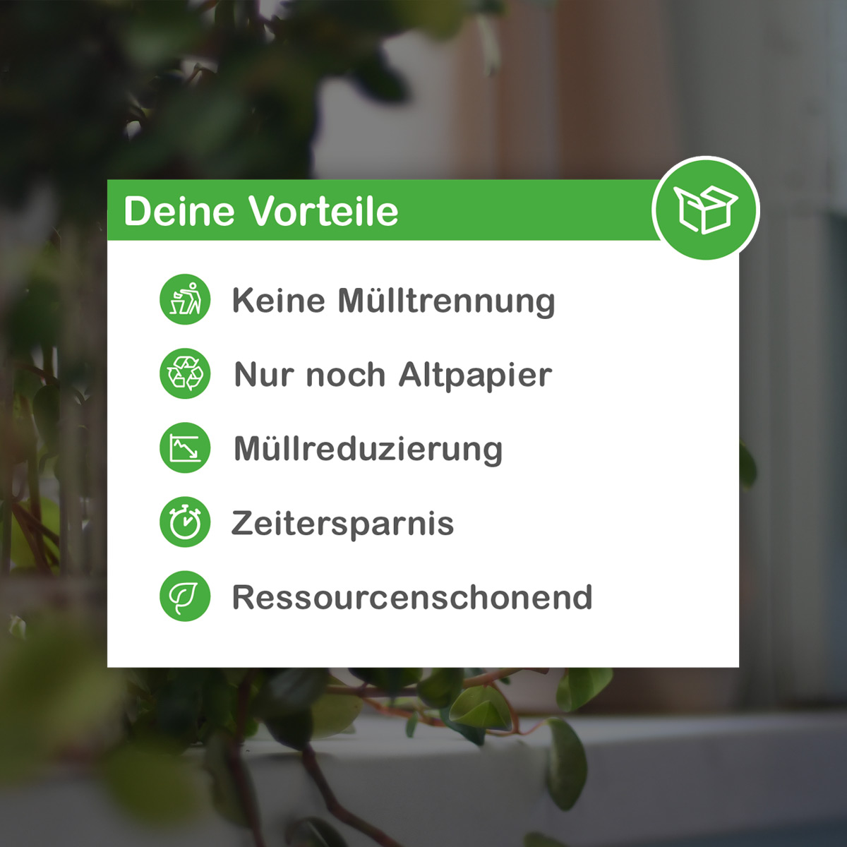Eines unserer Nachhaltigkeitsziele bis 2025 ist, dass 100 % unserer Primär- und Sekundärverpackungen frei von Einwegplastik sind und aus recyceltem Karton bestehen. So sparen wir Ressourcen ein, erzeugen weniger Müll und reduzieren den Aufwand bei der Mülltrennung.