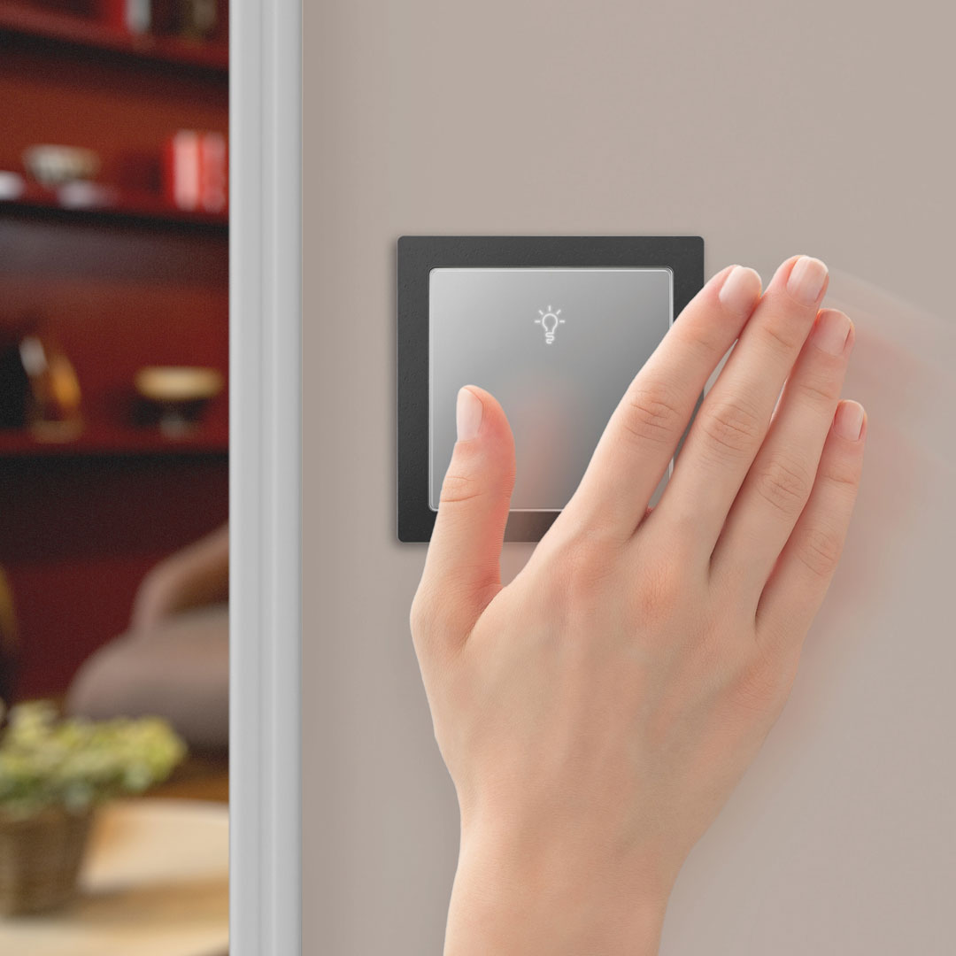 Der neue, innovative KNX Tastsensor Pro T ist ein smarter All-in-One-Schalter mit einer Vielzahl von anpassbaren Funktionen, berührungsloser Bedienung und einem intelligenten Temperatursensor.