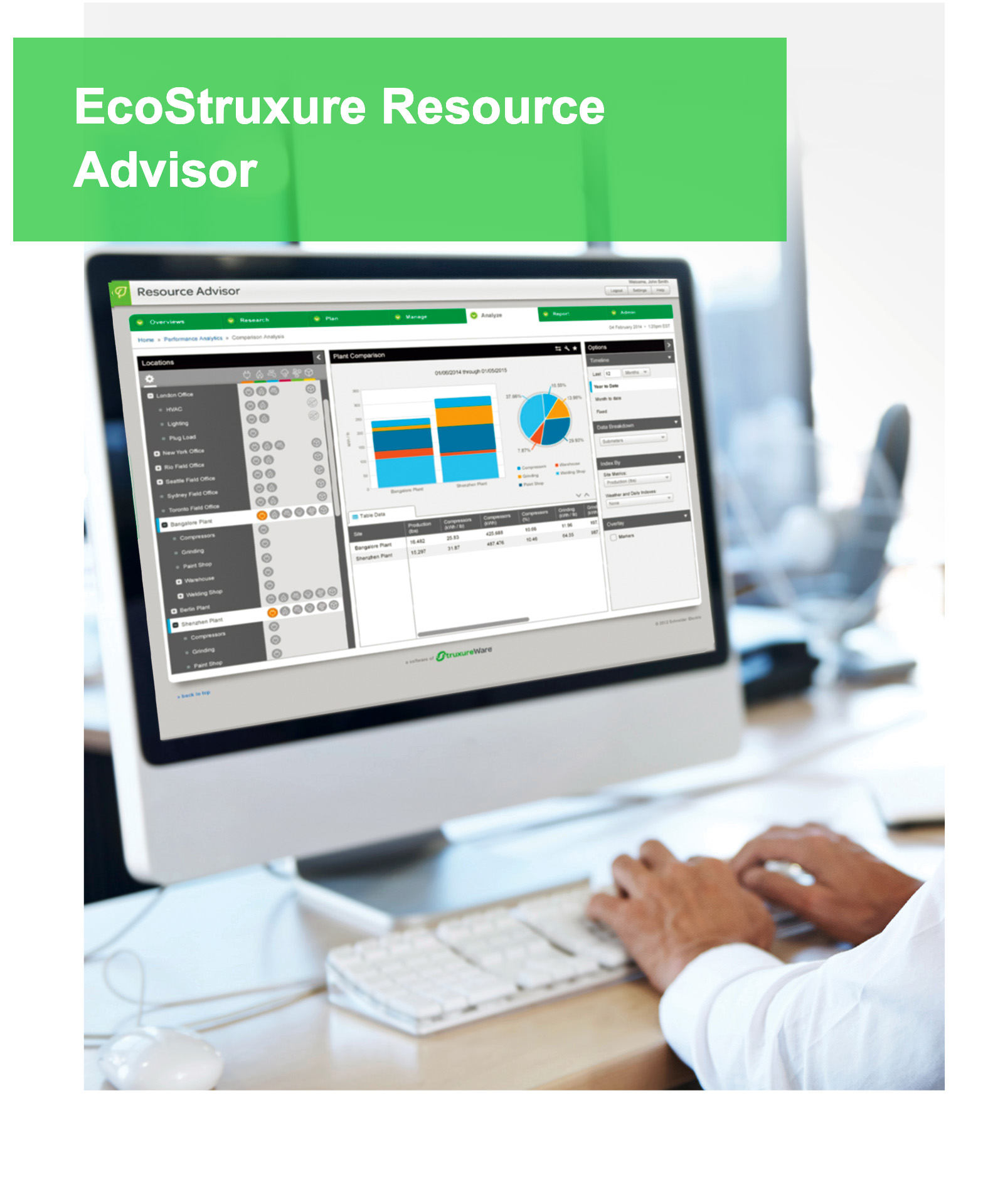 Unsere cloudbasierte Plattform sammelt automatisch Informationen rund um die Energiebilanz Ihrer Einrichtung. So können Sie einfach und schnell Ihre Unternehmens-KPIs einsehen und auf Basis dieser Daten Auffälligkeiten analysieren und Chancen nutzen. EcoStruxure Resource Advisor ist auch die perfekte Lösung, wenn mehrere Gebäude überwacht werden müssen – so können Sie die Werte vergleichen und entsprechend handeln – für mehr Effizienz und eine optimierte Energiebilanz.