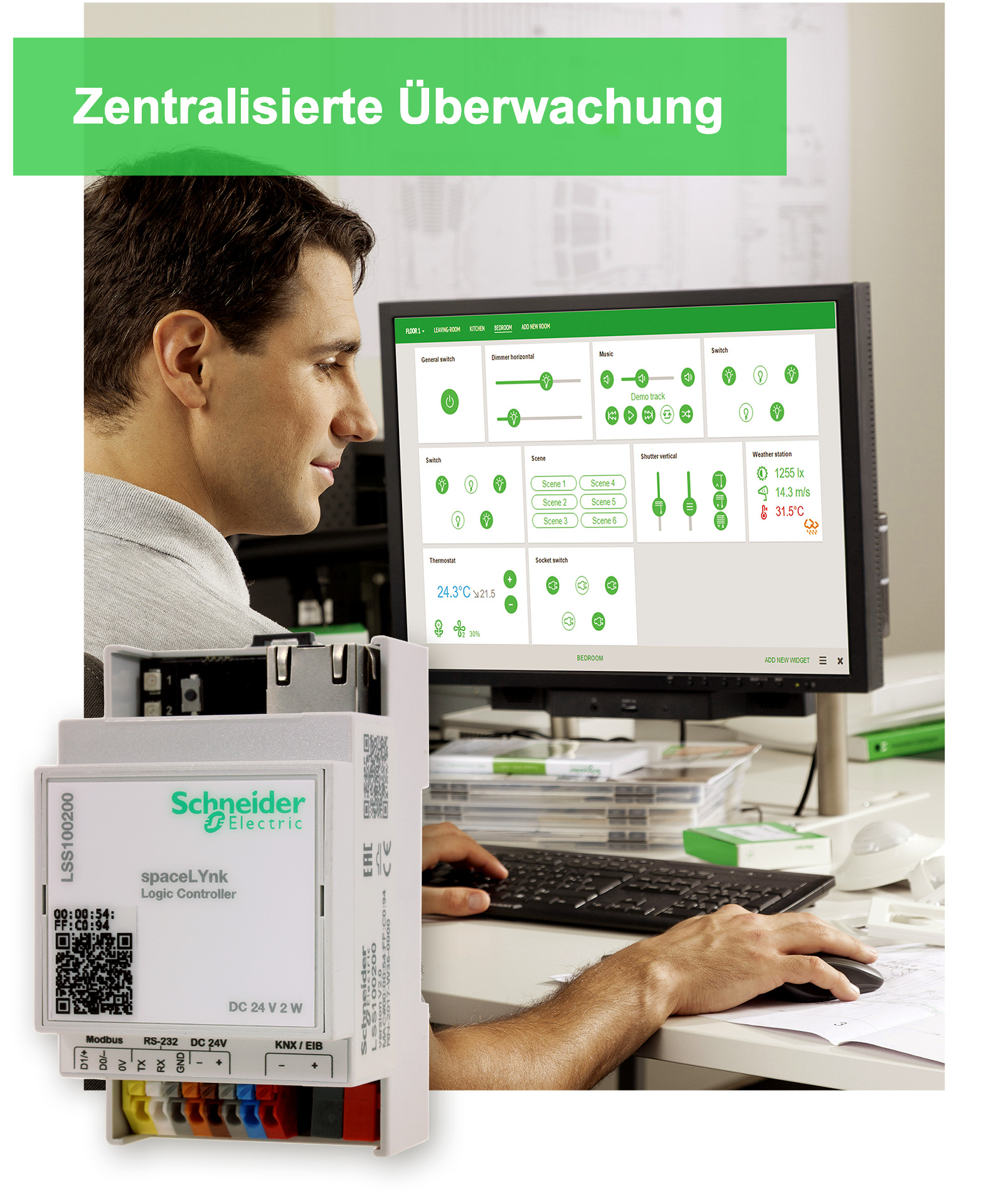 Moderne Gebäudemanagementsysteme sorgen dafür, dass man stets alles Wesentliche im Blick hat. Ob Licht, Patientenrufsystem oder Heizung – mit spaceLYnk verbinden Sie KNX-Systeme, BACnet-Datenpunkte und Modbus-Messgeräte und steuern dank einer zentralen Bedienoberfläche sämtliche Funktionen bequem und zeitsparend.