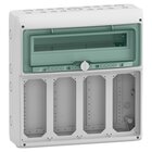 Enclosure for interlocked power outlet, Mureva Enclosure, 1x18 mod, 4 open 103x225mm, (W)448mm x(H)460mm, w/o term block