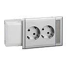 Doppelsteckdose mit Schriftfeld "push in" f Kanaleinbau CYB-PS Aluminiumeffekt