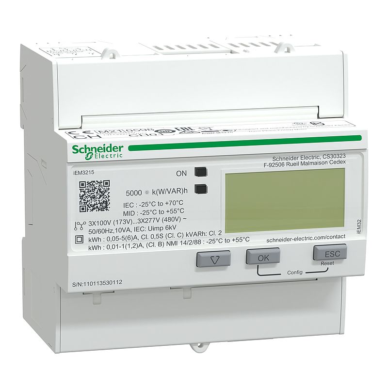 Energiezähler iEM3215, 3-phasig, 1A/5A, mit Teilzähler, 2E, Multi-Tarif, MID konform, Genauigkeitsklasse 1/0,5s