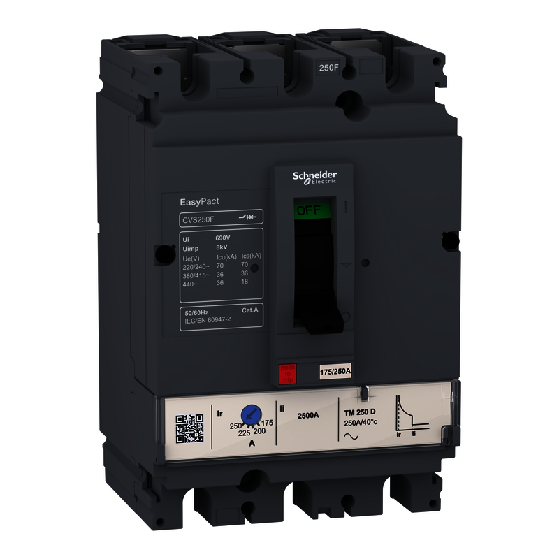 EasyPact CVS250F Leistungsschalter, 36 kA bei 415 VAC, 3P 3d, TM-D 200 A Auslöser
