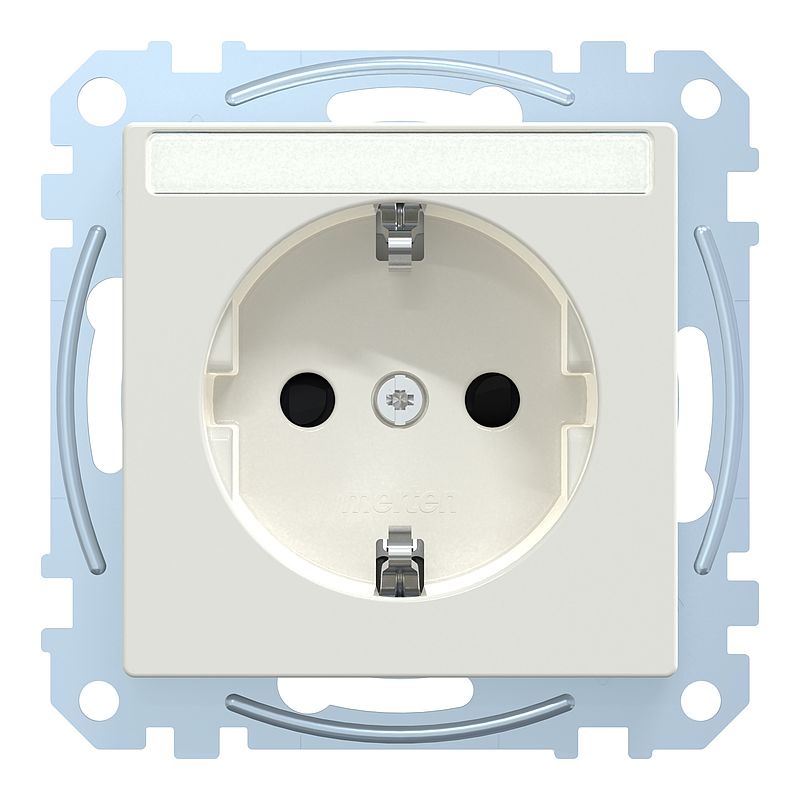 SCHUKO-Steckdose mit Schriftfeld, Berührungsschutz, Steckklemmen, polarweiß glänzend, System M