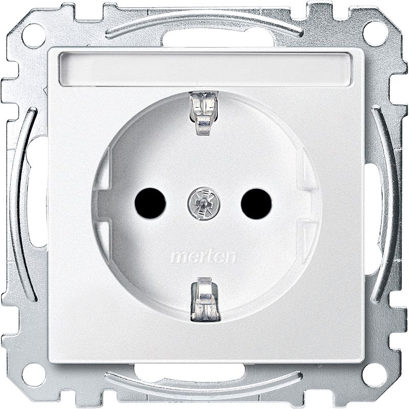 SCHUKO-Steckdose mit Schriftfeld, Berührungsschutz, Steckklemmen, polarweiß, System M