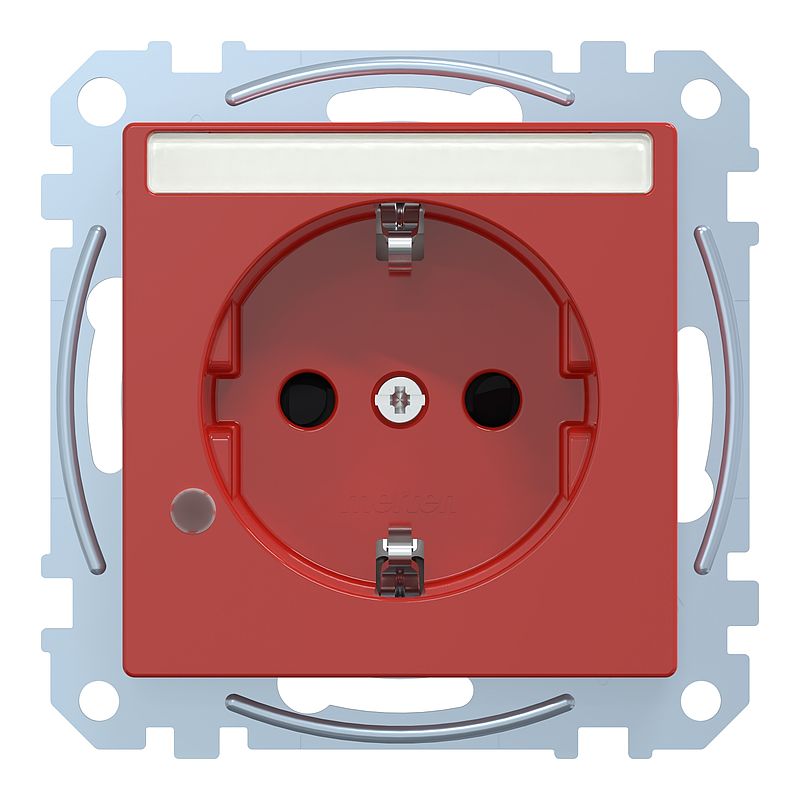 SCHUKO-Steckdose, Sonderstromkreis, Kontrolllicht, Schriftfeld, Berührungsschutz, Steckklemmen, rubinrot, System M