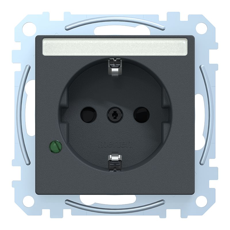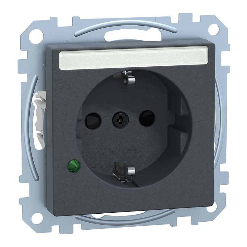 SCHUKO-Steckdose mit Überspannungschutz und Schriftfeld, Berührungsschutz, Steckklemmen, anthrazit, System M