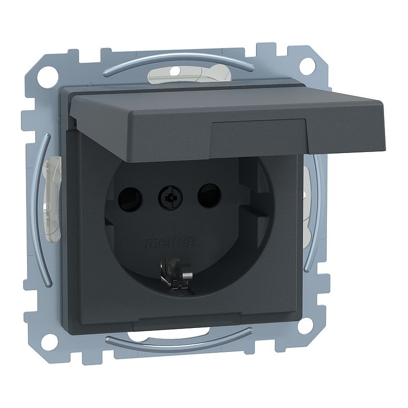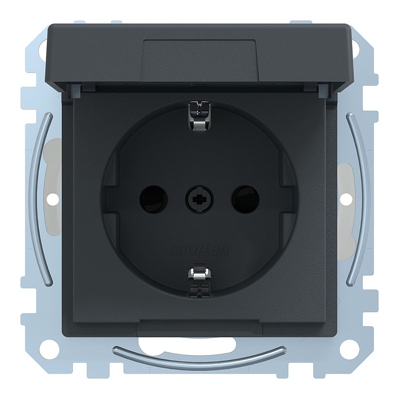 SCHUKO-Steckdose mit Klappdeckel, Berührungsschutz, Steckklemmen, anthrazit, System M