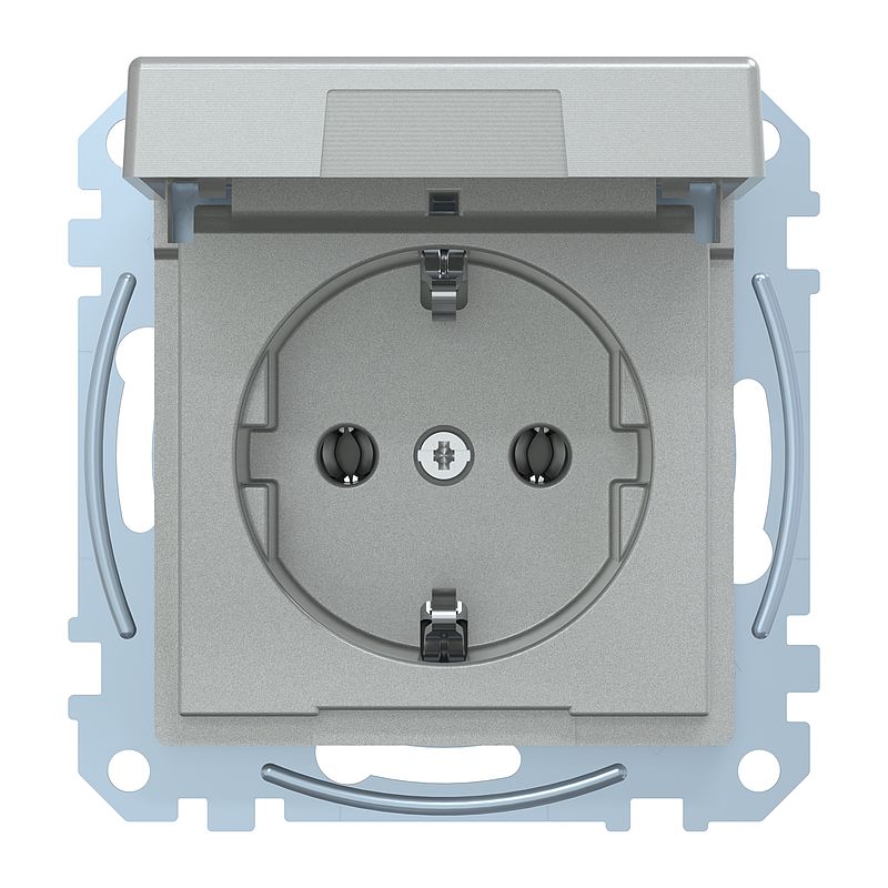 SCHUKO-Steckdose mit Klappdeckel, Berührungsschutz, Steckklemmen, aluminium, System M