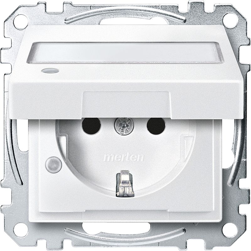 SCHUKO-Steckdose mit Klappdeckel, Kontrolllicht und Schriftfeld Berührungsschutz, Steckklemmen, polarweiß, System M