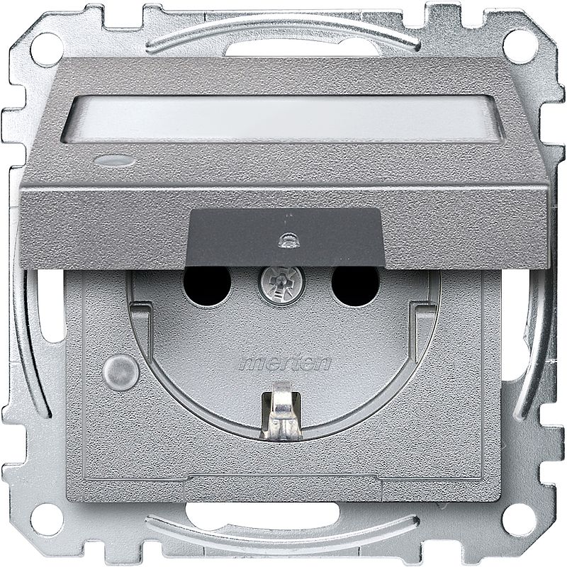 SCHUKO-Steckdose mit Klappdeckel, Kontrolllicht und Schriftfeld Berührungsschutz, Steckklemmen, aluminium, System M