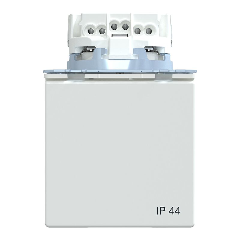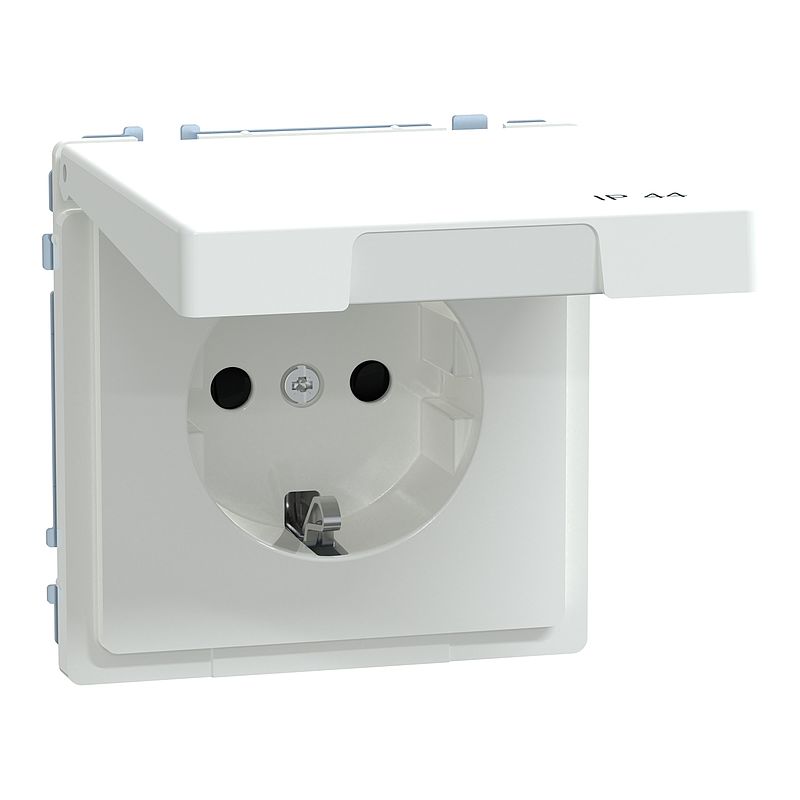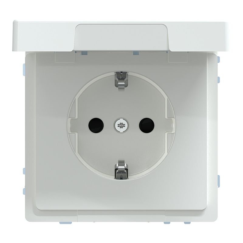 SCHUKO-Steckdose mit Klappdeckel, IP44, Berührungsschutz, Steckklemmen Lotosweiß, System Design