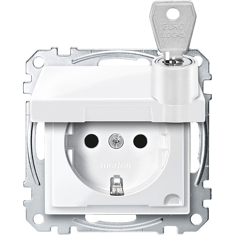SCHUKO-Steckdose, Klappdeckel, abschließbar, verschiedene Schließungen, BRS, Steckklemmen, polarweiß glänzend,System M