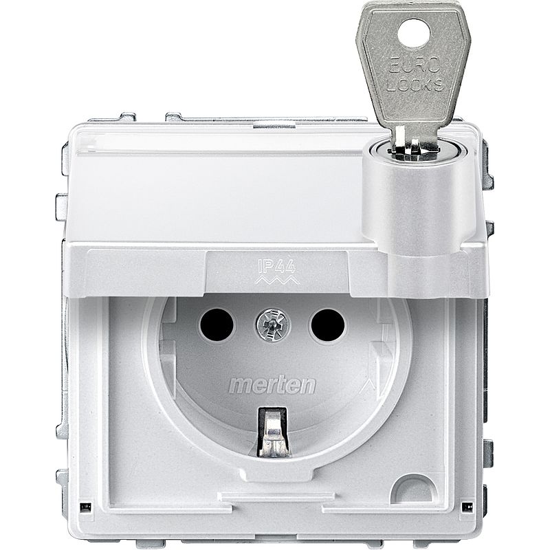 SCHUKO-Steckdose, Klappdeckel, Schriftfeld, abschließbar, versch. Schließungen, BRS, Steckklemmen, polarweiß, AQUADESIGN