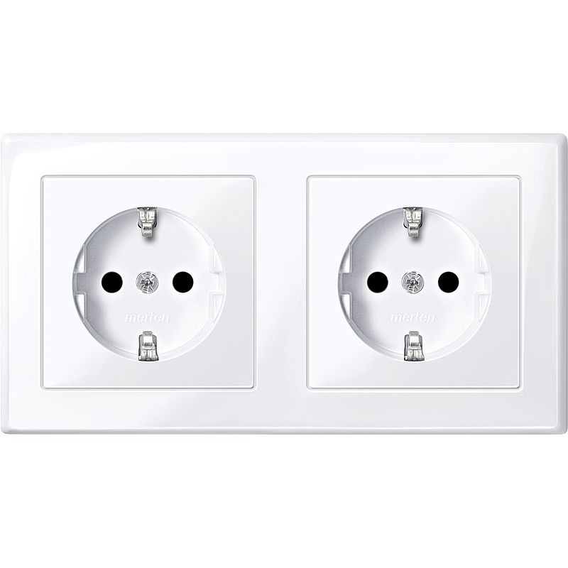 SCHUKO-Doppel-Steckdose, Berührungsschutz, Steckklemmen, aktivweiß glänzend, M-SMART