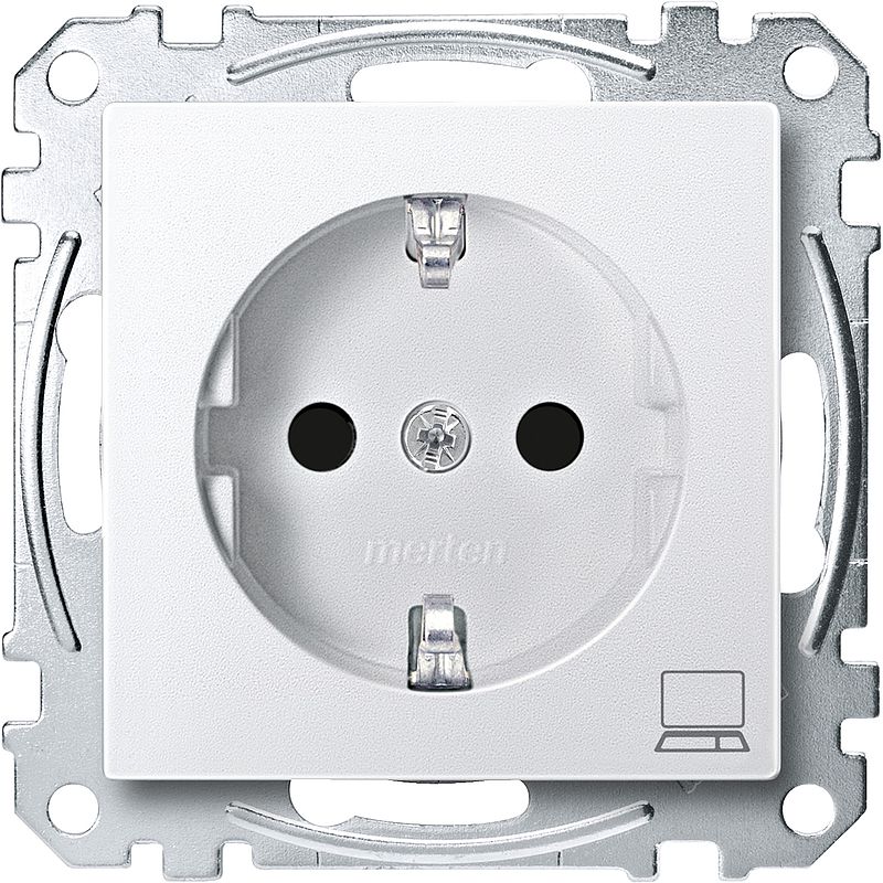 SCHUKO-Steckdose mit Kennzeichnung Computer, Berührungsschutz, Steckklemmen, polarweiß, System M