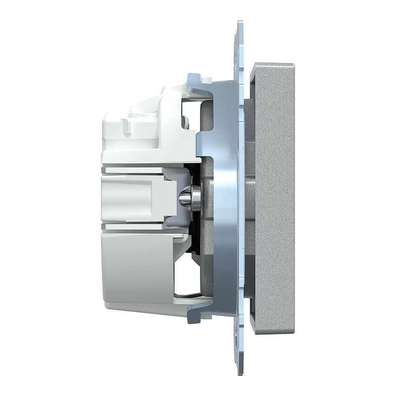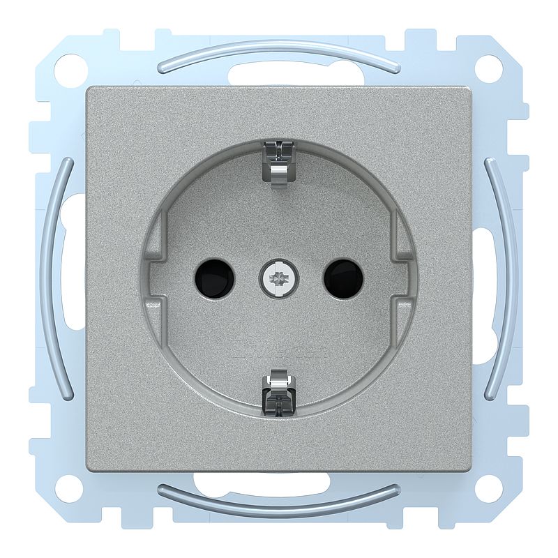 SCHUKO-Steckdose mit Kennzeichnung Computer, Berührungsschutz, Steckklemmen, aluminium, System M
