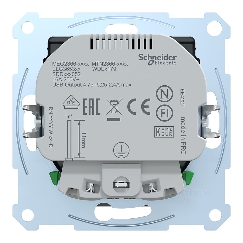 | Integrierte Verbindungsart | 1 Steckdose 250 V AC, maximaler Laststrom: 16 A 2 USB-Anschluss 5 V DC, maximaler Laststrom: 2,4 A |