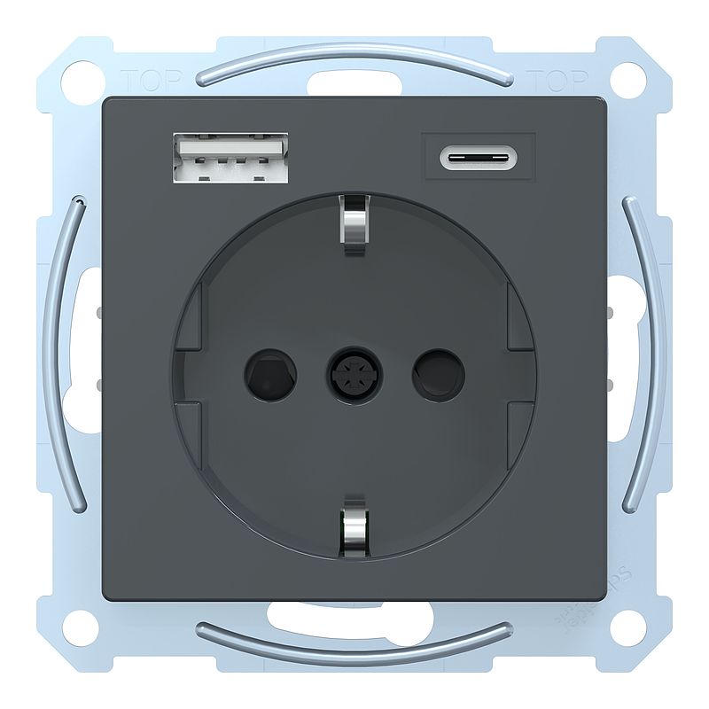 Schuko Steckdose mit USB Ladegerät Anthrazit System M
