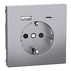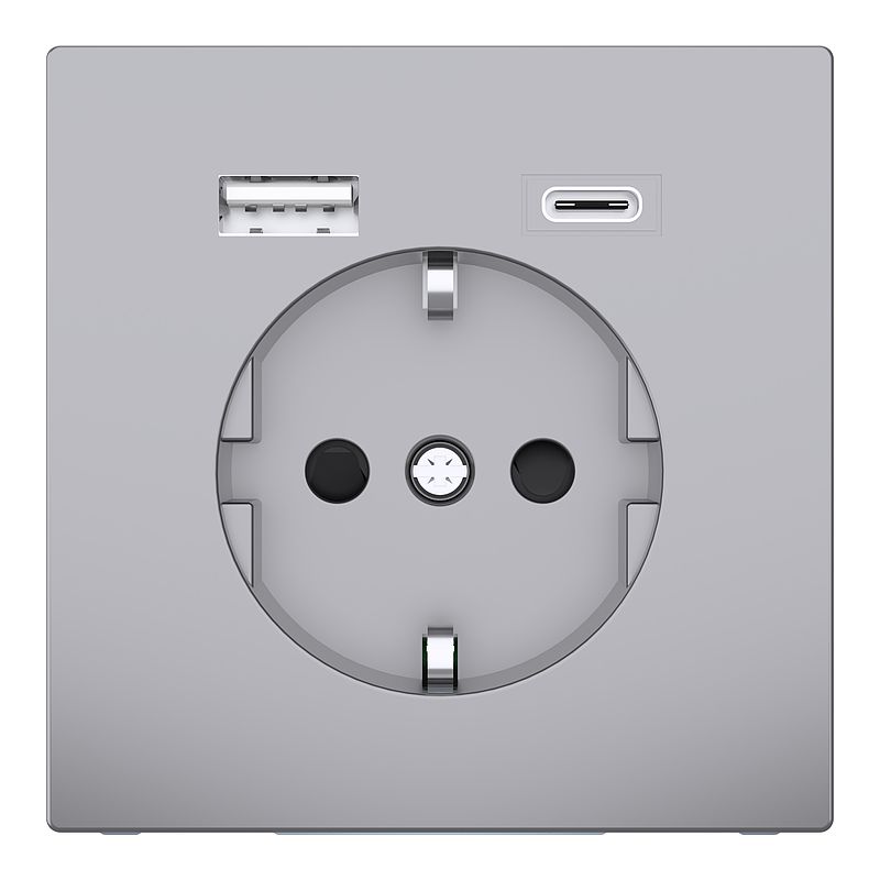 Schuko Steckdose mit USB Ladegerät, Edelstahl, System Design