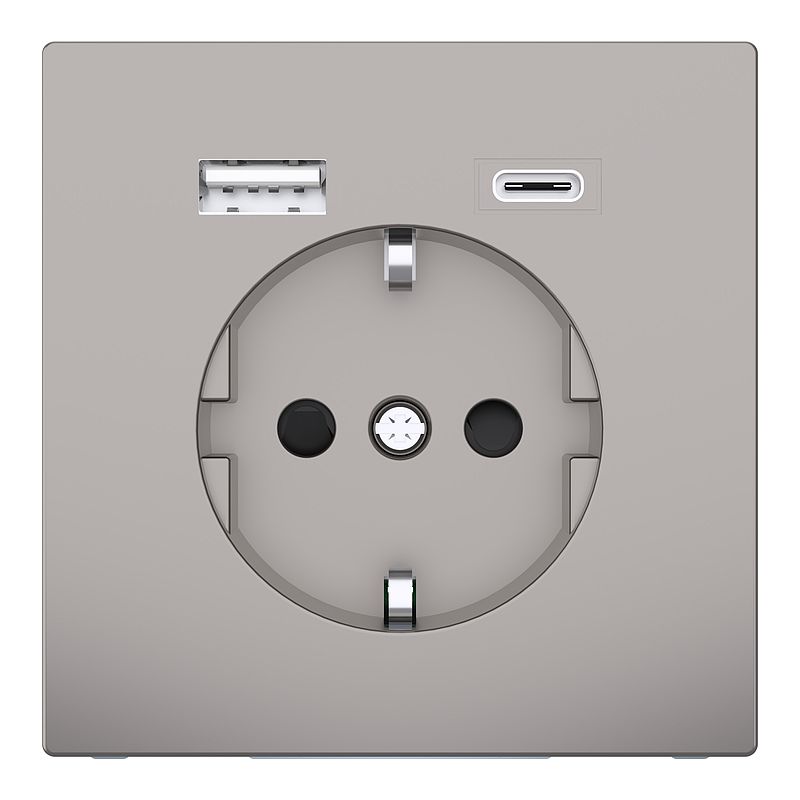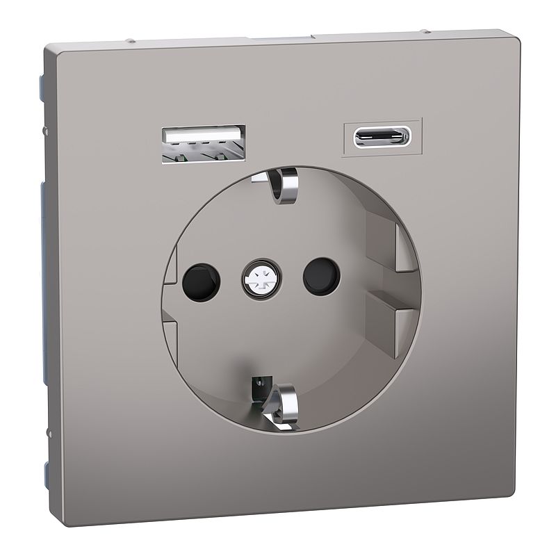 Schuko Steckdose mit USB Ladegerät, Nickelmetallic, System Design