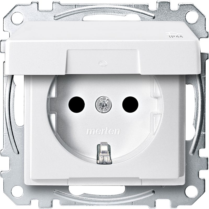SCHUKO-Steckdose mit Klappdeckel, IP44, Berührungsschutz, Schraub- Liftklemmen, polarweiß, M-SMART