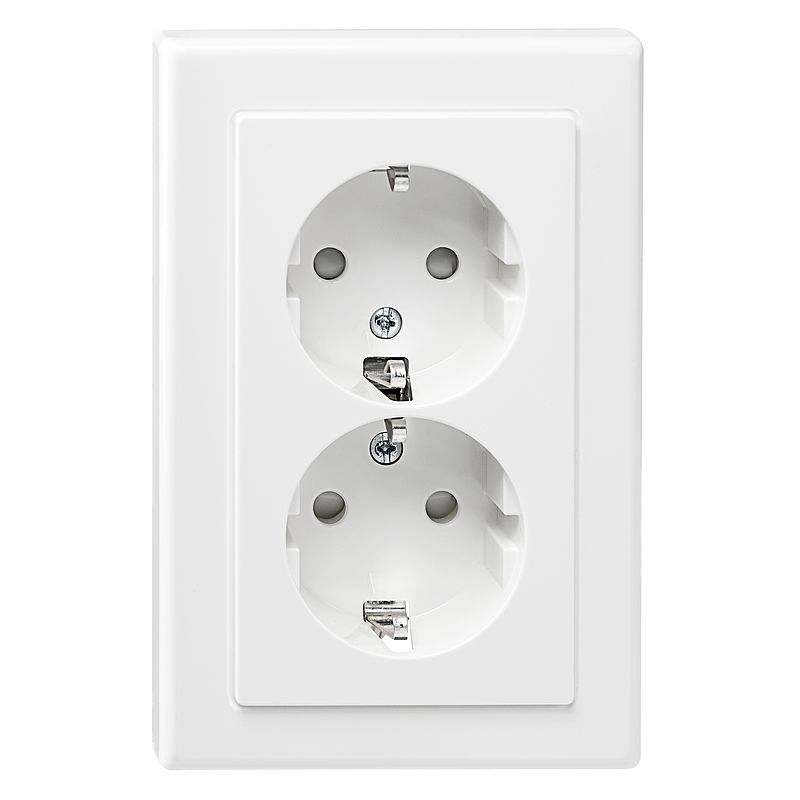 SCHUKO-Doppel-Steckdose, Berührungsschutz, Steckklemmen, polarweiß glänzend, System M