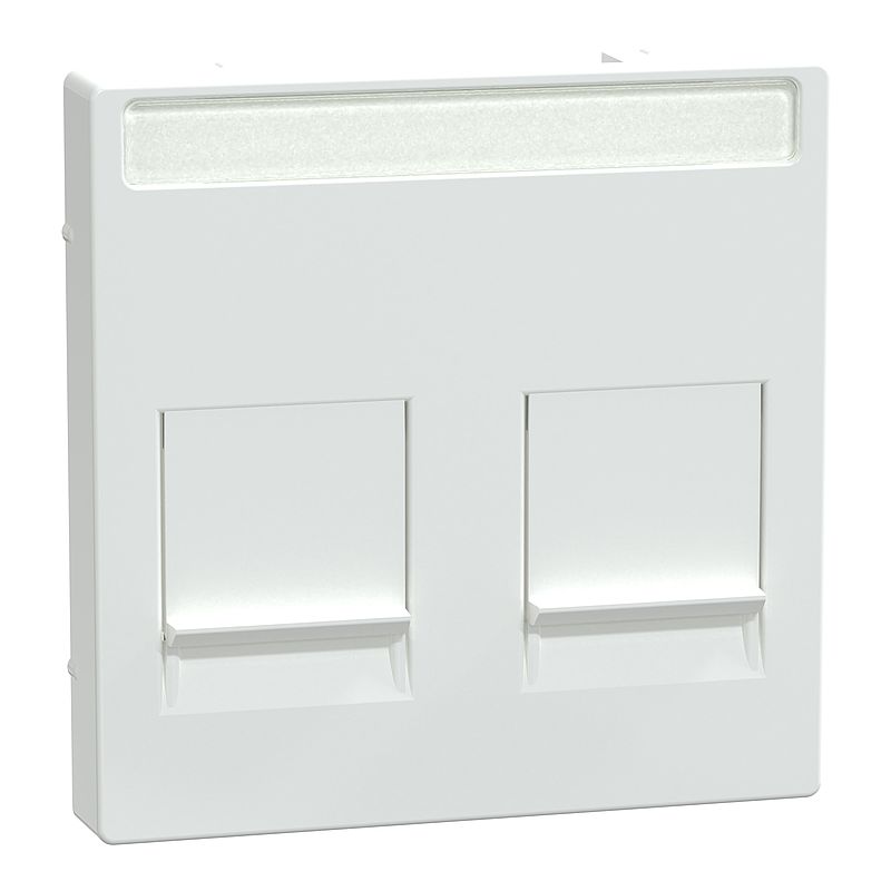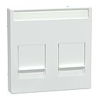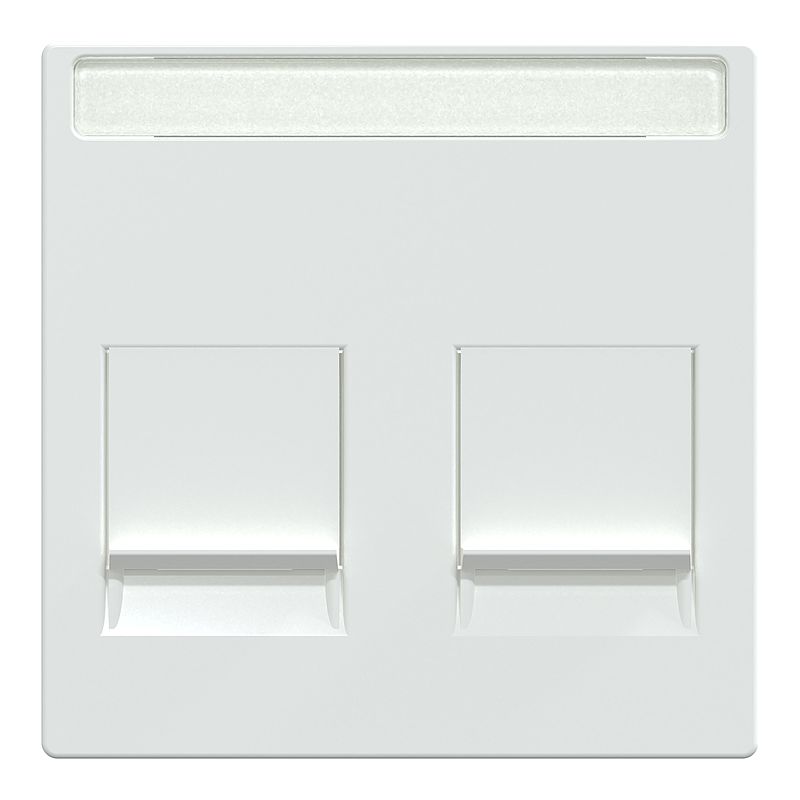 Zentralplatte für Modular Jack 2fach mit Schriftfeld und Staubschutzschieber, aktivweiß glänzend, System M