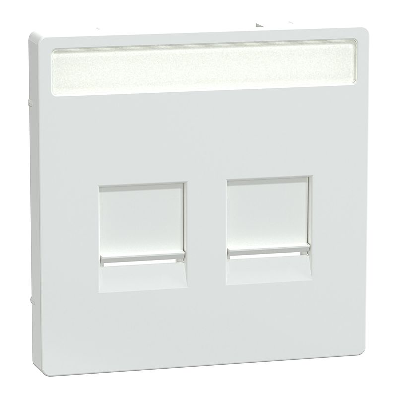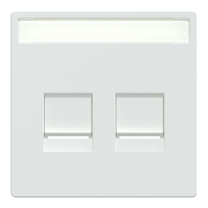 Zentralplatte für Modular Jack 2fach mit Schriftfeld und Staubschutzschieber, Lotosweiß, System Design