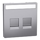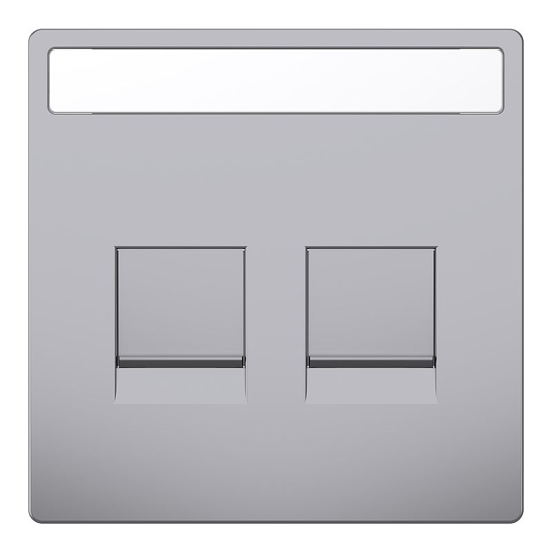 Zentralplatte für Modular Jack 2fach mit Schriftfeld und Staubschutzschieber, Edelstahl, System Design