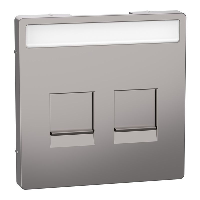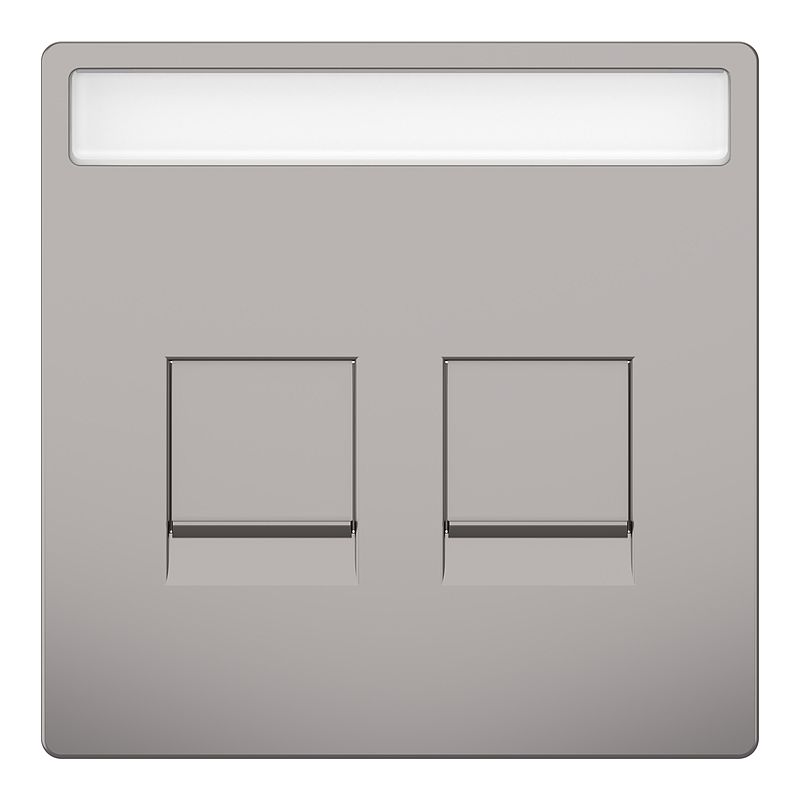 Zentralplatte für Modular Jack 2fach mit Schriftfeld und Staubschutzschieber, Nickelmetallic, System Design