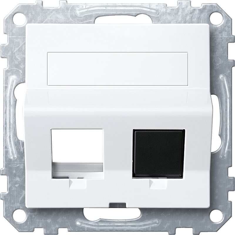 Schrägauslass 2fach mit Tragring und Schriftfeld für Modular Jack, aktivweiß glänzend, System M