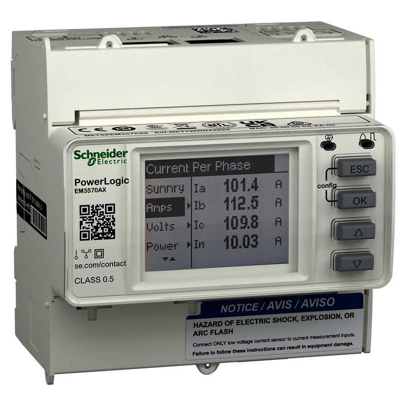 PowerLogic Energiezähler EM3570, DIN Ethernet Modbus TCP/IP & BACnet/IP, 24VDC, Rogowski Spulen Eingang, 3-phasig