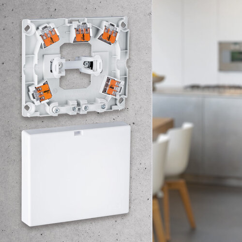 Ob Aufputz- oder Unterputzinstallation, ob Einfach- oder Mehrfachanschlussdose – Die Merten Herdanschlussdosen sind robust, zuverlässig und und für eine schnelle und sichere Unterputz- und Aufputz-Installation geeignet.