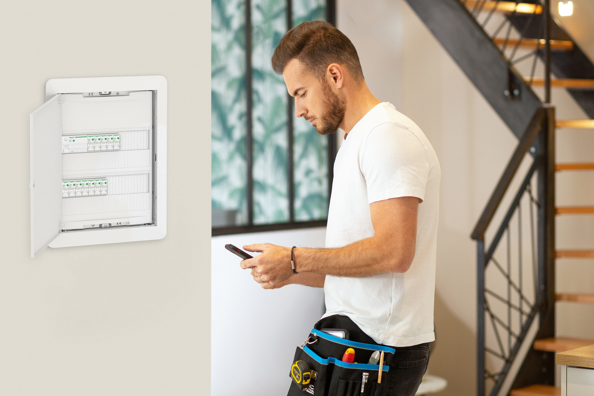 Über unsere mySchneider App kannst du dir mit dem integrierten Labeling Tool Etiketten für Kleinverteiler erstellen, ausdrucken und dann auf den Verteiler kleben.