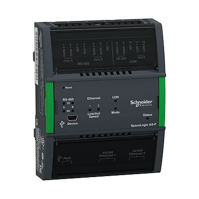 Der SpaceLogic AS-P Automation Server (ehemals SmartX) ist das Herzstück eines EcoStruxure BMS. Der AS-P bietet Steuerungslogik, Trendprotokollierung, Alarmüberwachung und unterstützt die Kommunikation sowie Konnektivität mit I/O-Modulen und Feldbussen. In kleinen Installationen kann der AS-P als embedded Server mit I/O-Modulen eingesetzt werden. In mittleren und großen Installationen wird die Funktionalität über mehrere Einheiten verteilt und kommuniziert über TCP/IP.