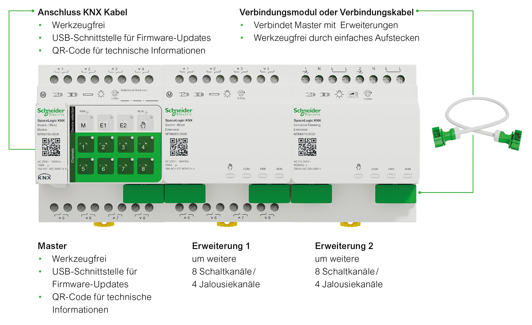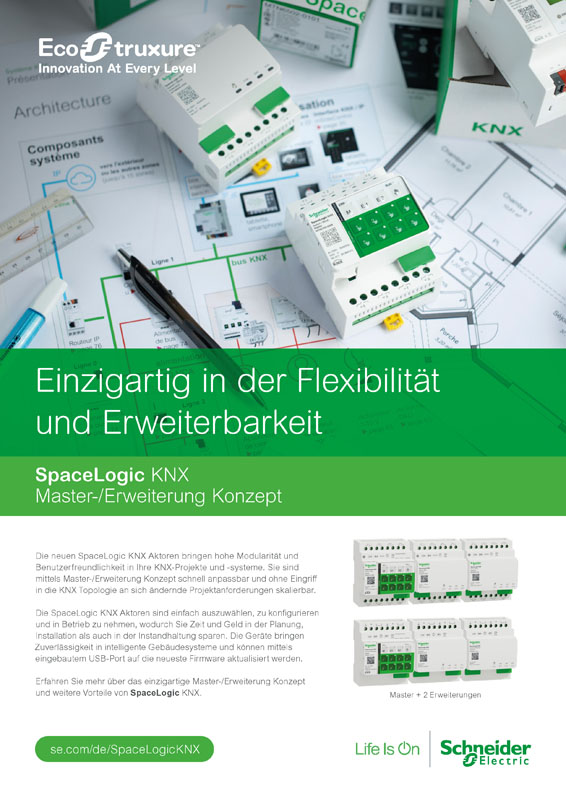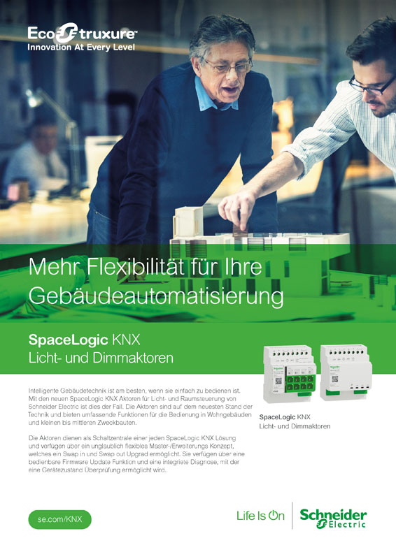 Als Teil der SpaceLogic KNX-Systemlösung von Schneider Electric erweisen sich die neuen Aktoren zum Dimmen, Schalten und Verschatten als besonders flexibel, effizient und pflegeleicht. So konzipiert, dass sie von Planung und Installation über Betrieb und Instandhaltung bis zu eventuellen Erweiterungen an die alltäglichen Anforderungen an Techniker und Installateure angepasst sind.