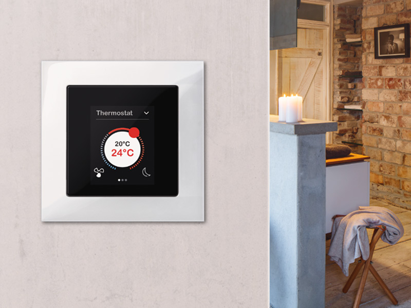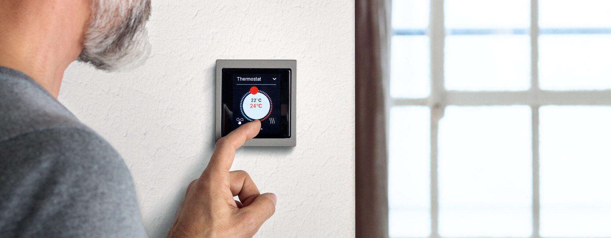 Ein KNX-Schalter mit Thermostat ist eine intelligente Fortführung des klassischen Thermostats und sorgt für eine optimale Beheizung deiner Räume. Über jeden Temperatursensor im Raum lassen sich Temperaturen präzise und flexibel erfassen, um die Beheizung der Räume zu optimieren. Im Vergleich zum klassischen Thermostat kannst du bei einem KNX-Schalter mit Thermostat gesonderte Regeln und Einstellungen vorgeben, z. B. bei Abwesenheit während der Arbeitszeit.