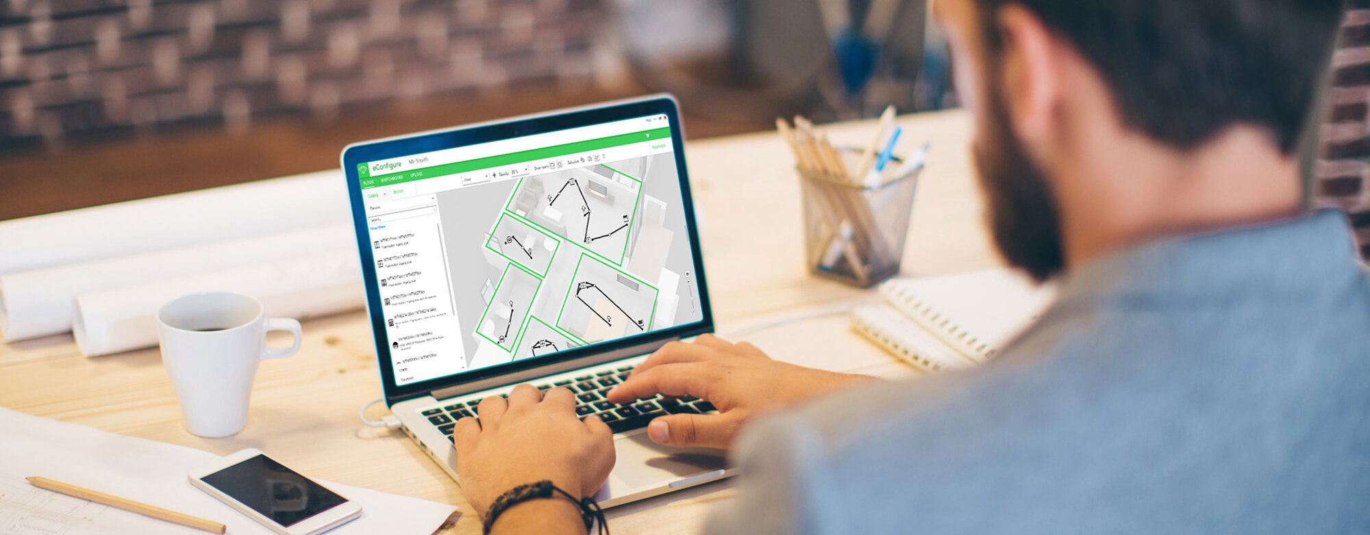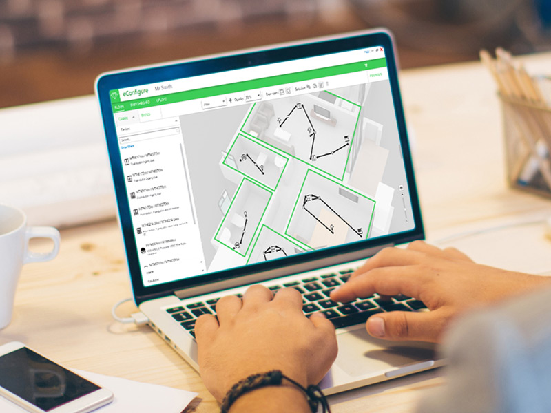 Eine einfache Lösung, Wohnhäuser und Gewerbekomplexe mit smarten Steuerungen für Beleuchtungs-, Beschattungs- und HKL-Systeme auszustatten: eConfigure KNX Lite von Schneider Electric. Für smarte Häuser und Gewerbegebäude.