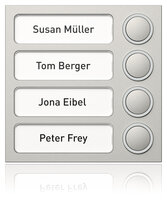 Ritto Türstationen und Briefkastensysteme sowie Wohntelefone und Video-Hausstationen in Komfortausführung beinhalten Namensschilder bzw. Schriftfelder. Bauseitig verfügen diese Produkte in der Erstausstattung über beschriftbare Folieneinleger. Nutzen Sie für deren Beschriftung einfach die untenstehenden Word-Dateien.