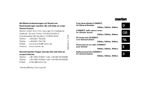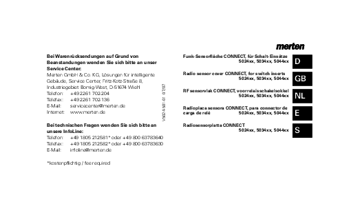 Gebrauchsanleitung Funk-Sensorfläche CONNECT, für Dimmer-Einsätze