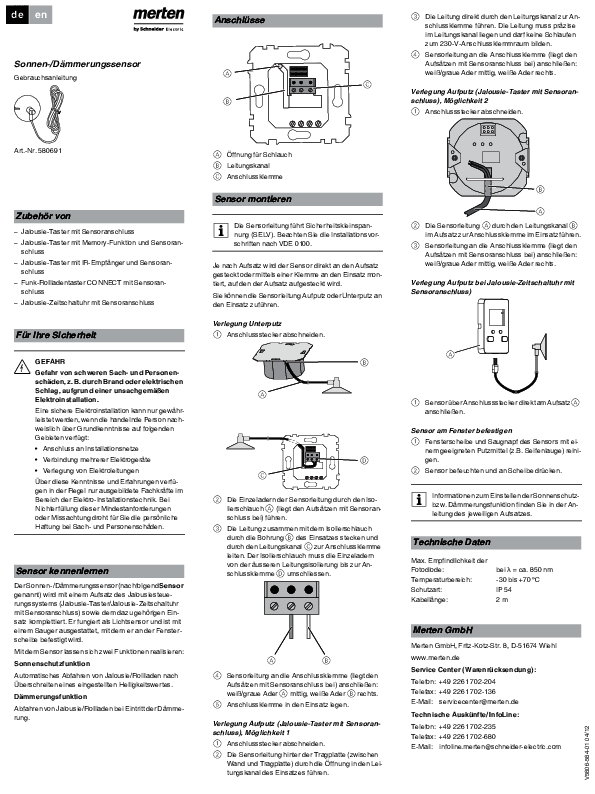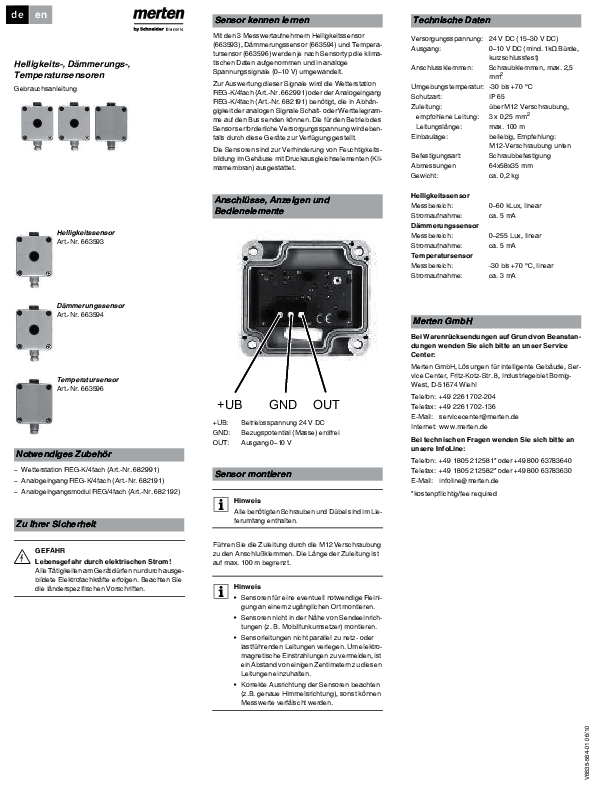 Gebrauchsanleitung Helligkeits-, Dämmerungs-, Temperatursensoren