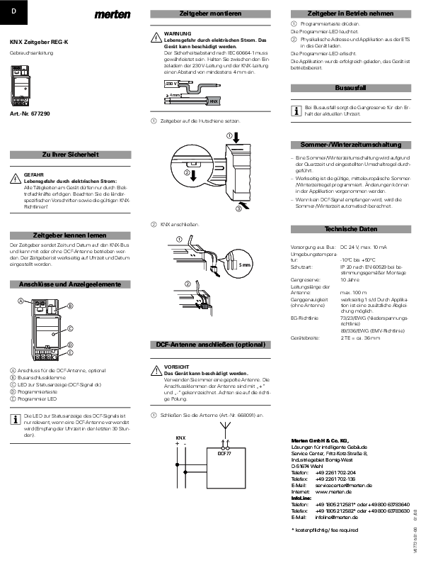 Gebrauchsanleitung KNX Jahreszeitschaltuhr REG-K/8/800