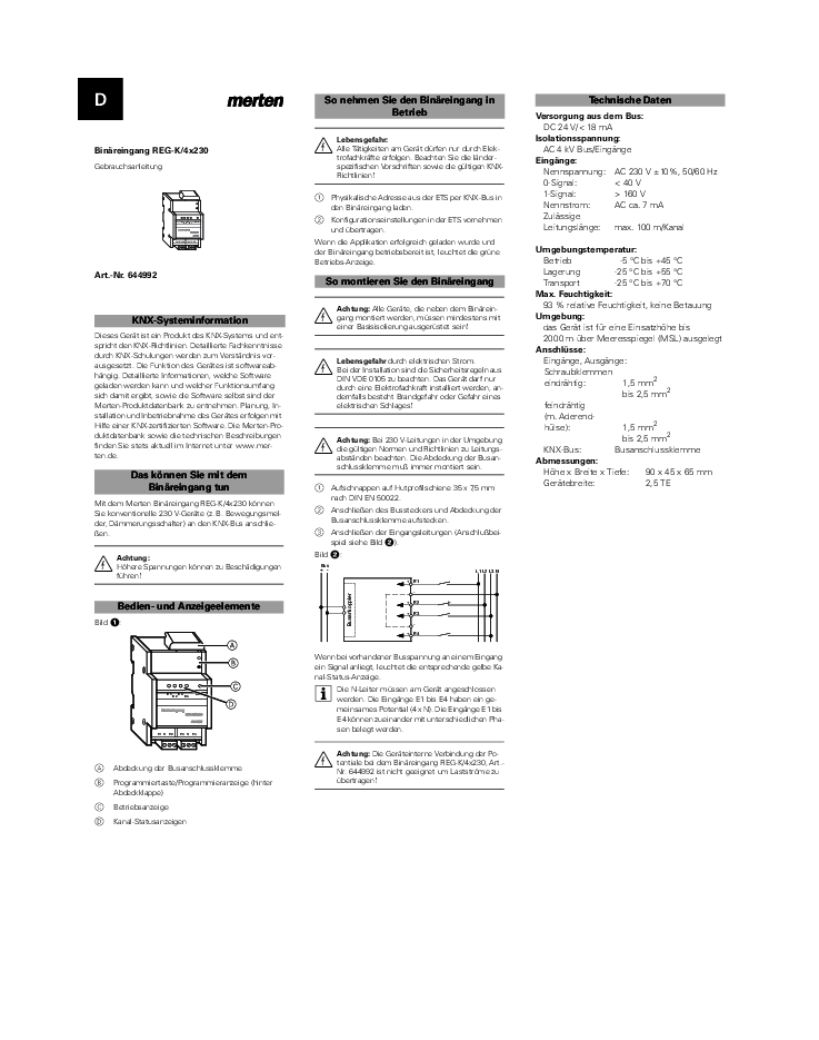Gebrauchsanleitung Binäreingang REG-K/4x230