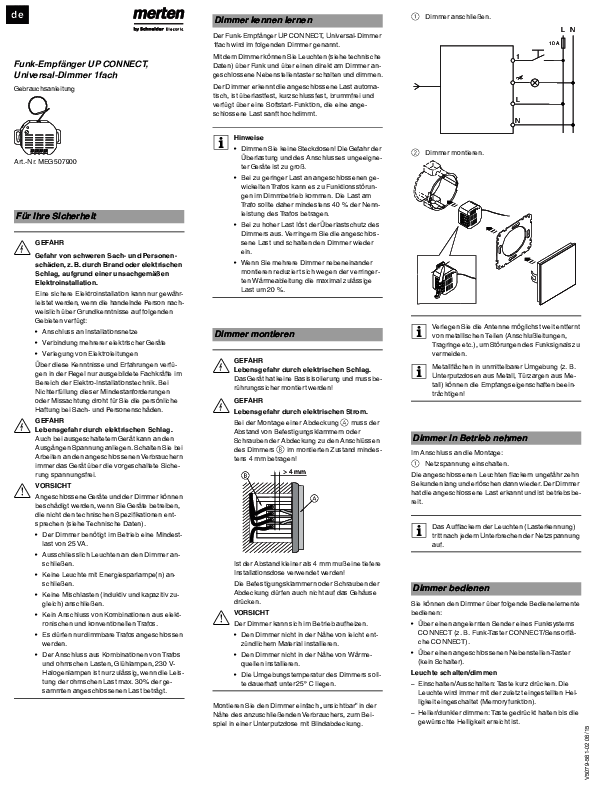 Gebrauchsanleitung Funk-Empfänger UP CONNECT, Universal-Dimmer 1fach