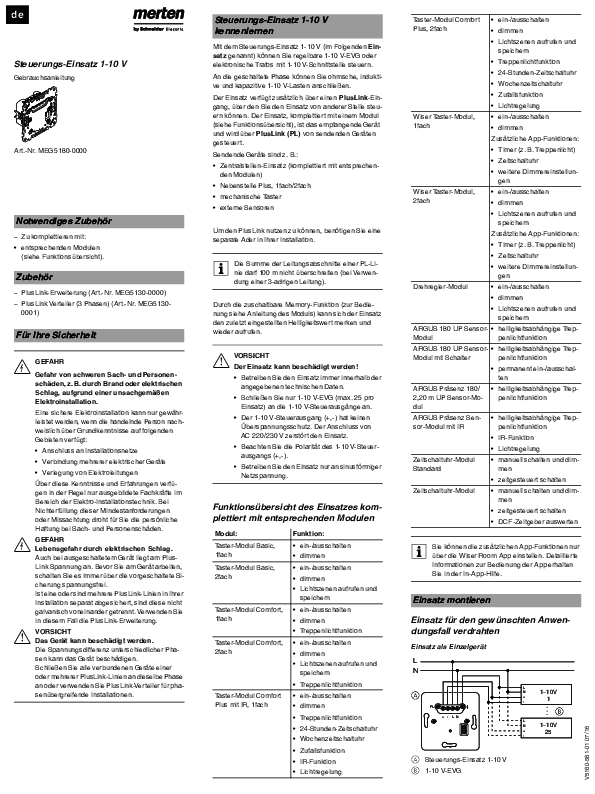 Gebrauchsanleitung Elektronik-Potentiometer-Einsatz 1-10 V